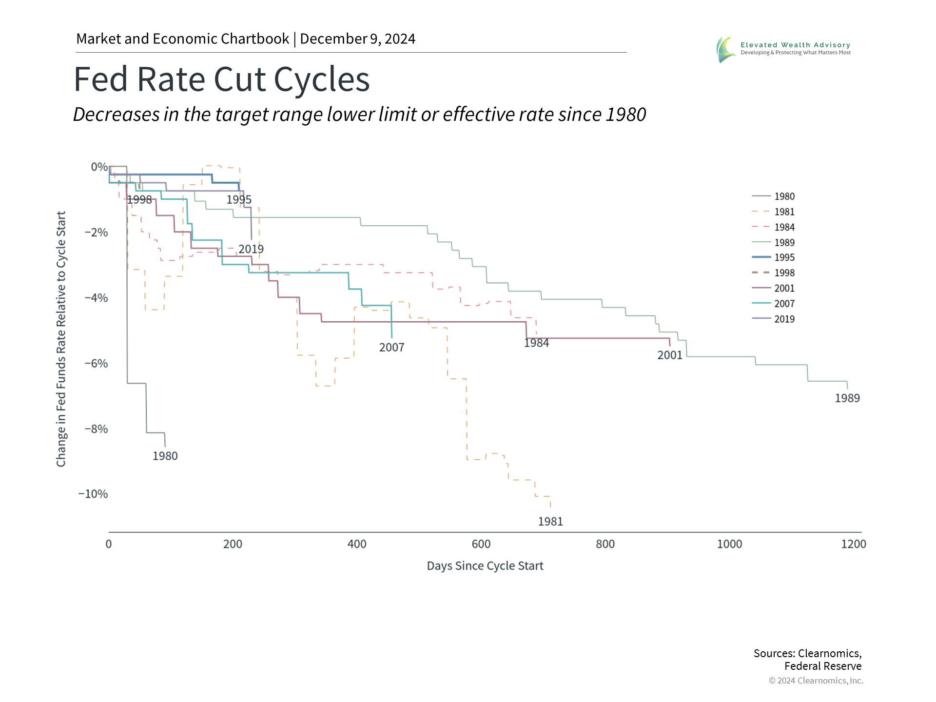 The Fed began to cut policy rates in September after months of investor speculation. So far, the Fed has lowered rates by three-quarters of one percent, with markets expecting three or four more additional cuts by the end of 2025. The timing and magnitude of these rate cuts remain uncertain and will depend on the economic data. Regardless, the monetary policy headwinds that began in 2022 are now turning into tailwinds. Just as higher rates slowed economic growth and led to investor concerns, lower rates can help to stimulate the economy, supporting both corporate earnings and possibly stock market returns in the long run. After a few challenging years, the easing of monetary policy may also be positive for bonds as inflation and economic growth potentially enter a more stable period. If short-term rates trend lower and longer-term rates remain steady, the prices of many bonds could benefit while still offering attractive yields. This environment may present opportunities for diversified investors to generate both income and growth. For investors, what matters is not trying to guess each move by the Fed, but the overall path of rates. With greater clarity and guidance around Fed policy, the market’s attention may shift back to specific policies by the incoming Trump administration. 4. Political focus will shift from the election to policy