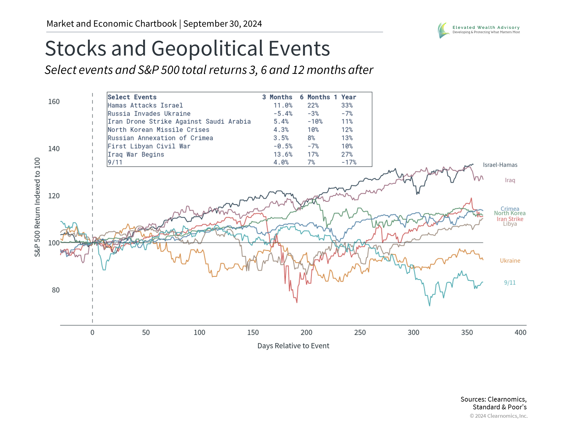 Fed rate cuts have resulted in lower interest rates across maturities, as well as a “disinversion” of the yield curve. This is sometimes referred to as a “bull steepener” since it can be positive for bonds. In many ways, this is a reversal of the bear market in bonds experienced in 2022 when rates were on the way up. Bond prices move in the opposite direction of interest rates. This is because already-issued bonds with higher rates become more valuable as market rates fall. Thus, bondholders today not only benefit from higher-than-average yields, but could experience price appreciation if rates continue to trend lower. For the economy, lower rates improve borrowing costs for corporations and individuals, potentially boosting economic expansion and investment prospects. This can be positive for economic growth which then translates into better earnings and corporate fundamentals. Thus, despite the challenges bonds have faced in the past few years, it’s important to maintain balance across asset classes. Geopolitical conflicts are worrisome but do not directly impact markets