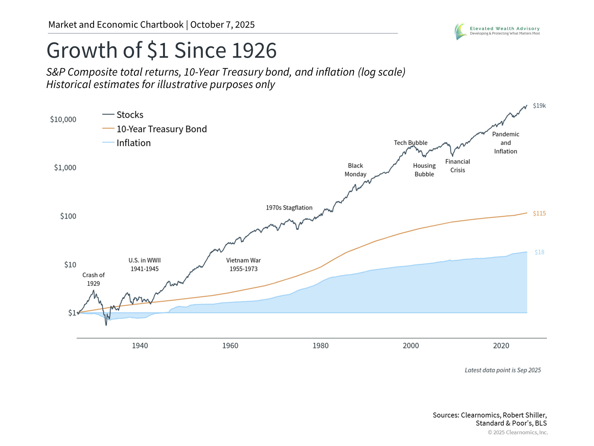 The history of financial markets is clear when it comes to growing the value of hard-earned savings and beating inflation. As shown in the chart above, stocks and bonds have risen magnitudes more than inflation. Even though what used to cost $1 in 1926 now costs $18 today, stocks and bonds have risen many multiples more, creating true wealth for those who were positioned for these long trends. This is true despite periodic market pullbacks, financial crises, and recessions over the past century. The past is no guarantee of the future, but this year’s market rebound shows how quickly market pessimism can give way to a market rebound. Even the high inflation rates of the past few years have paled when compared to the returns of a balanced portfolio. Over time, the compounding effect of even modest returns above inflation can create wealth. From a financial planning perspective, cash provides essential liquidity and flexibility for near-term spending needs and emergencies. For instance, a down payment for an upcoming home purchase will likely involve holding cash-like instruments, as would tuition payments and other bills that need to be paid within a year. Similarly, maintaining an emergency fund provides important protection against unexpected events like job loss or medical emergencies. Holding excess cash quietly erodes purchasing power