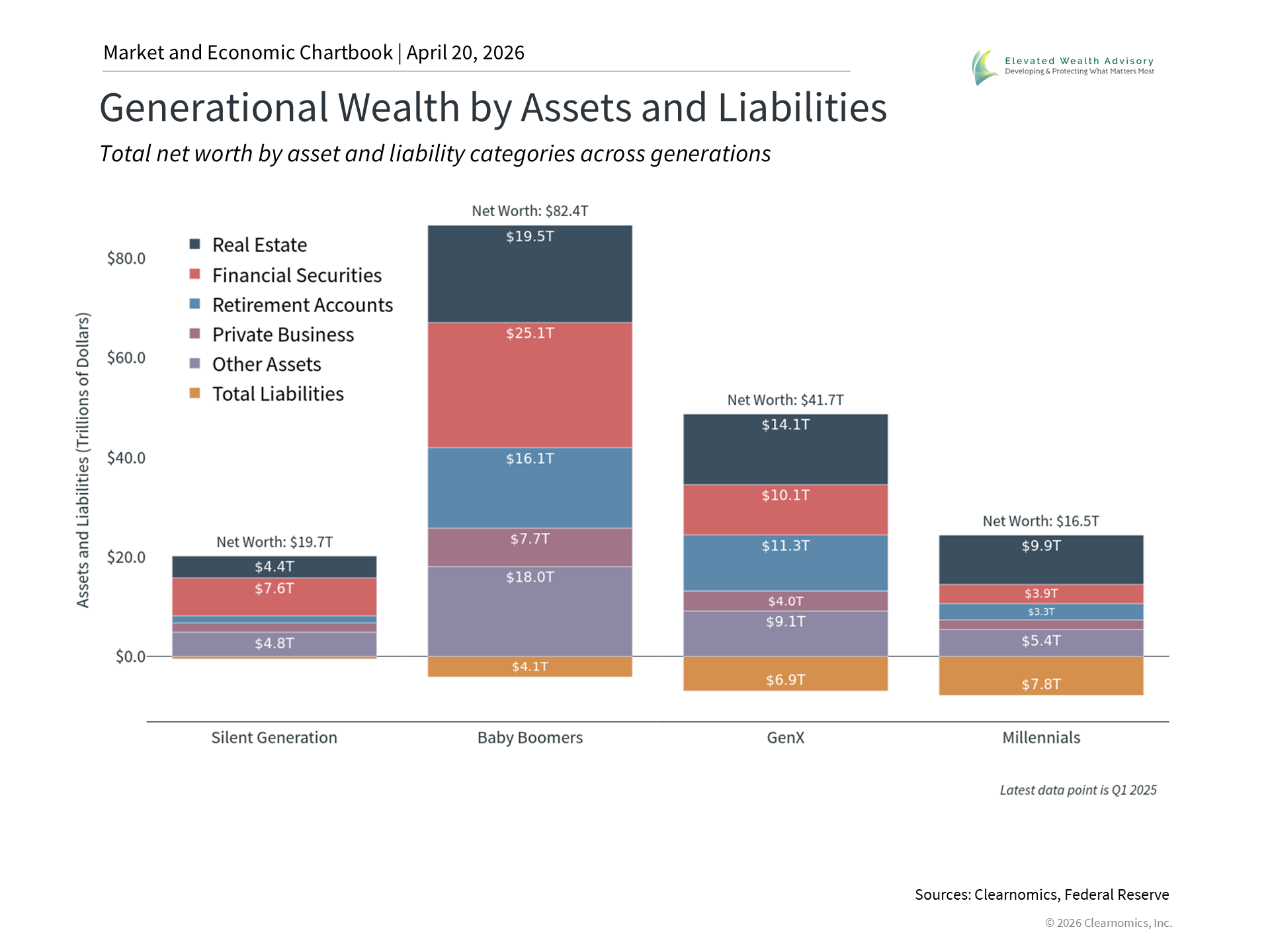 As the chart above illustrates, real estate is an important component of household net worth across all generations. For older Americans, real estate holdings often represent a significant share of total assets accumulated over decades. Baby Boomers, for instance, hold over $19.5 trillion in real estate, representing roughly 24% of their total net worth. For Gen X and Millennials, that share rises to approximately 34% and 60%, respectively. Of course, real estate is also a significant source of outstanding debt for younger households that have not had time to pay off their mortgages or benefit from decades of housing market growth. This “wealth effect” is important, especially when the stock market is volatile and the world feels uncertain. When home values rise, homeowners tend to feel more financially secure and may be more willing to spend on goods and services, supporting broader economic growth. They may feel this way even if they do not actively access their home equity, such as through a reverse mortgage or home equity line of credit. This also highlights the importance of maintaining a holistic perspective around financial planning. This is because short-term stock market swings, while never pleasant, may be less impactful to an investor’s financial picture than they may perceive, since much of their wealth is tied to other assets. In fact, depending on the investor’s specific situation, prioritizing mortgages and other forms of debt may be more helpful than focusing on the stock market. These psychological and financial effects make the housing market important as both an economic indicator and when it comes to financial planning. Inflation is another factor that is affected by housing costs, since it is the primary driver of the “shelter” category within the Consumer Price Index. Even before energy prices led to the latest jump in headline inflation, elevated shelter costs were an important reason that inflation has been slower to return to the Fed’s 2% target. Household debt levels reflect both mortgage and consumer borrowing