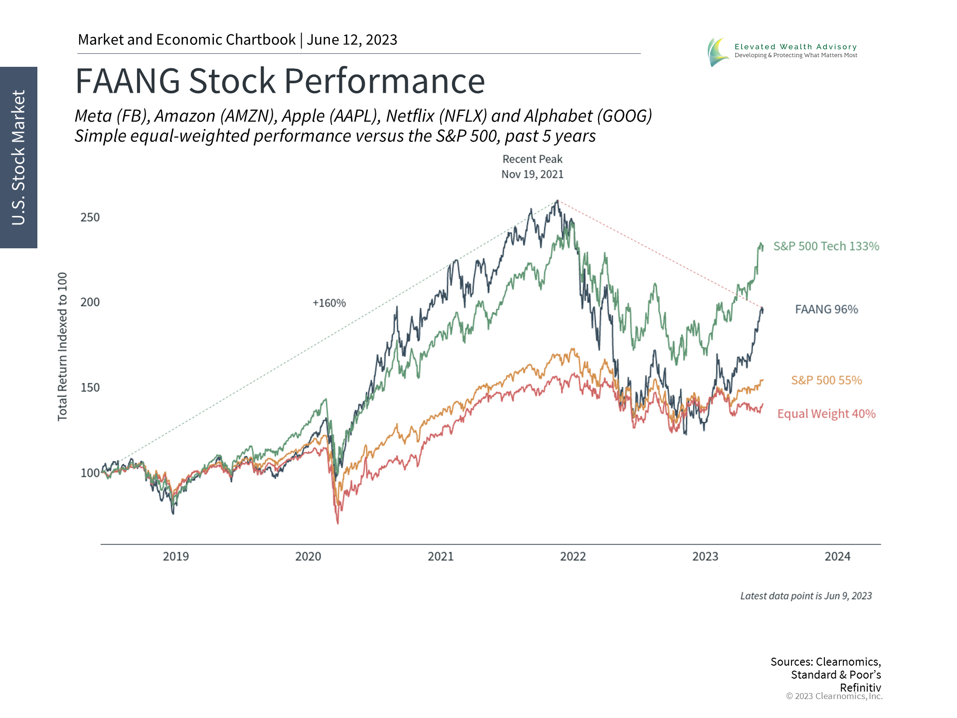 The world has been abuzz over artificial intelligence and the possible benefits and threats. These range from the practical such as better tools for knowledge workers and ways for students to avoid writing papers, to the philosophical including what it means to be sentient and the impact on human civilization. In between, there are more mundane questions around the economy and markets, especially for technology-related sectors. Given the promises and hyperbole around AI, what can long-term investors do to maintain perspective and stay properly invested? Tech stocks have benefited from falling interest rates and enthusiasm for AI