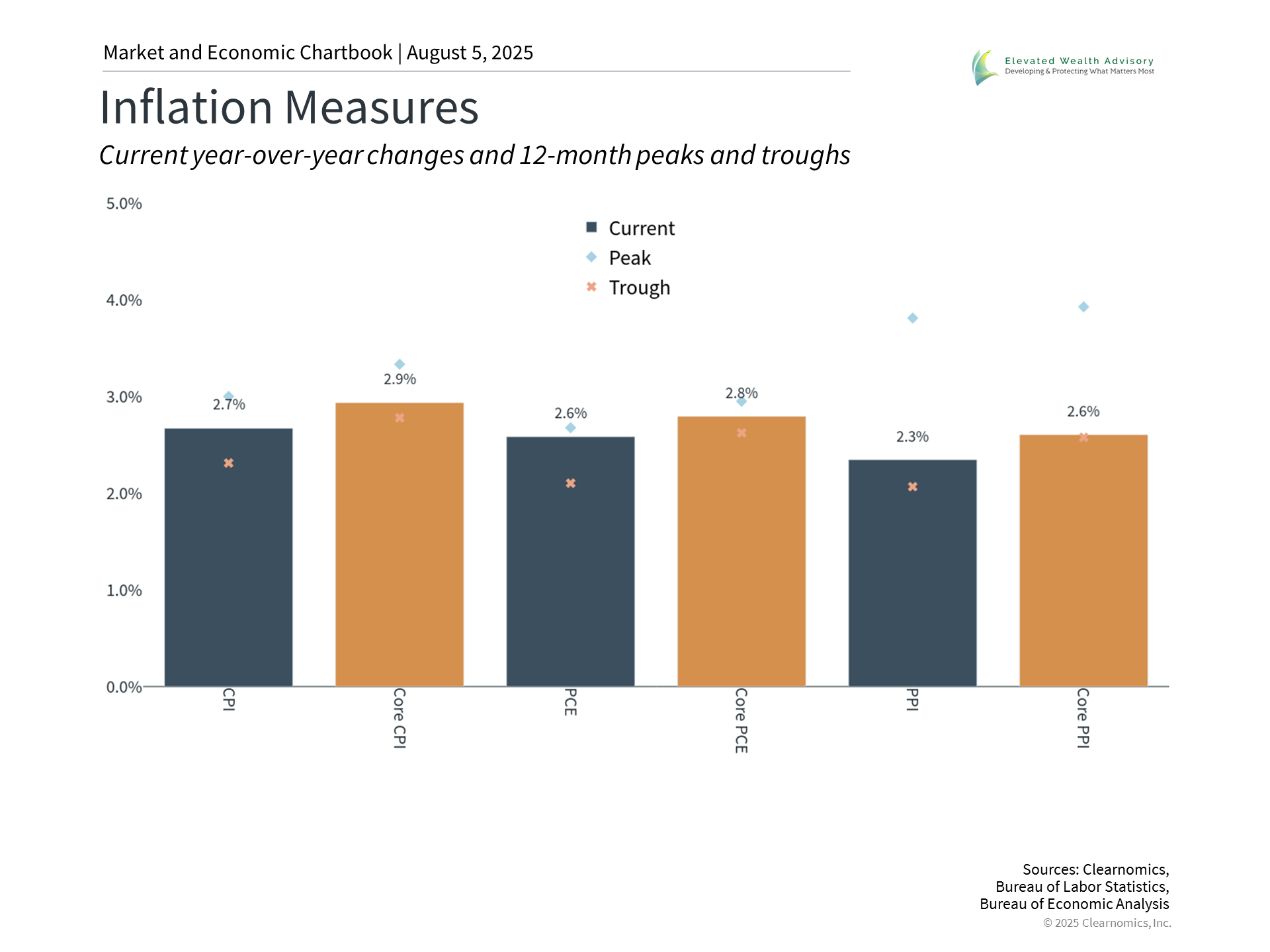 Due to these challenges, it's important to look at many perspectives, including both public and private data, to get a clearer understanding of the economy. In investment research, this is often known as “mosaic theory,” or the idea that disparate pieces can form a comprehensive picture. Jobs, growth, inflation, corporate earnings, and consumer spending – from different data sources – all provide valuable pieces of the puzzle. Much of the economics profession involves studying which indicators matter, how much, and when. For example, while the latest employment data is weaker than expected, other data suggests that the economy's overall output continues to expand at a healthy pace. Second quarter GDP growth accelerated to 3.0%, well above the long-term average, representing a reversal of the trends from the first quarter. Tariffs remain the wildcard and are one important reason for mixed perspectives on the economy. Inflation has not yet picked up dramatically as some feared, but it does remain stubbornly above the Fed's 2% target. Still, there are early signs that tariffs could be filtering through to consumer prices. According to the latest Consumer Price Index report, inflation for everyday consumer goods is accelerating even as price pressures for services are easing. In addition, the latest Personal Consumption Expenditures numbers show that inflation accelerated to 2.6% in June from a year earlier. For investors, it’s normal for economic figures to point in slightly different directions, and even seem contradictory at times. This is sometimes due to economic uncertainty, and at other times due to measurement challenges. Regardless, it is the longer-term direction of the economy that really matters for investors, and utilizing different data sources is key to understanding the bigger picture. The bottom line? The latest jobs report has raised questions about the reliability of government data. Investors should understand the uses and limitations of this data. Maintaining a broader perspective based on a variety of data sources is the best ways to make long-term investment decisions. | |||