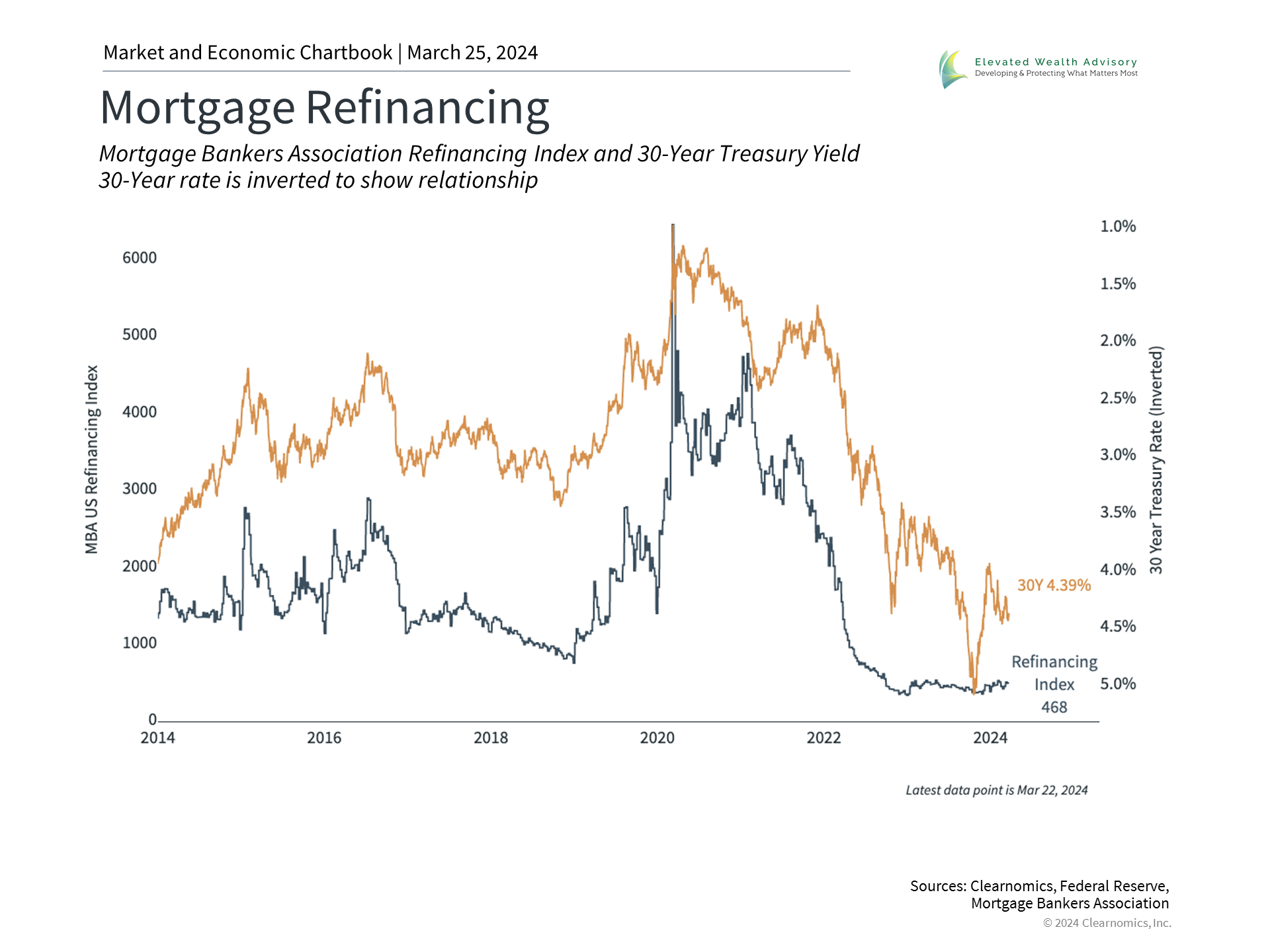 In commercial real estate, recent events such the rescue of New York Community Bank (NYCB) by private investors have also raised market concerns. While the banking sector has stabilized since last year, commercial real estate has continued to struggle especially in the office and multifamily segments. Unfortunately, these areas constitute a significant portion of NYCB's loan portfolio, much of which was acquired from Signature Bank. That acquisition also pushed NYCB's assets above $100 billion which makes it subject to higher capital and liquidity requirements. Thus, the issues facing NYCB can be characterized as a continuation of the problems that Signature Bank faced due to higher interest rates and a slowing economy, rather than a broader, new systemic issue. This means that it's possible for these issues to be bank-specific rather than reflect problems across the entire financial system. One consequence of Fed rate hikes across history is the impact on banks, including the various savings and loan crises that occurred in the 1980s and 1990s. Ideally, these pressures begin to ease as the Fed loosens monetary policy in the coming months. Refinancing activity has stalled due to high interest rates
