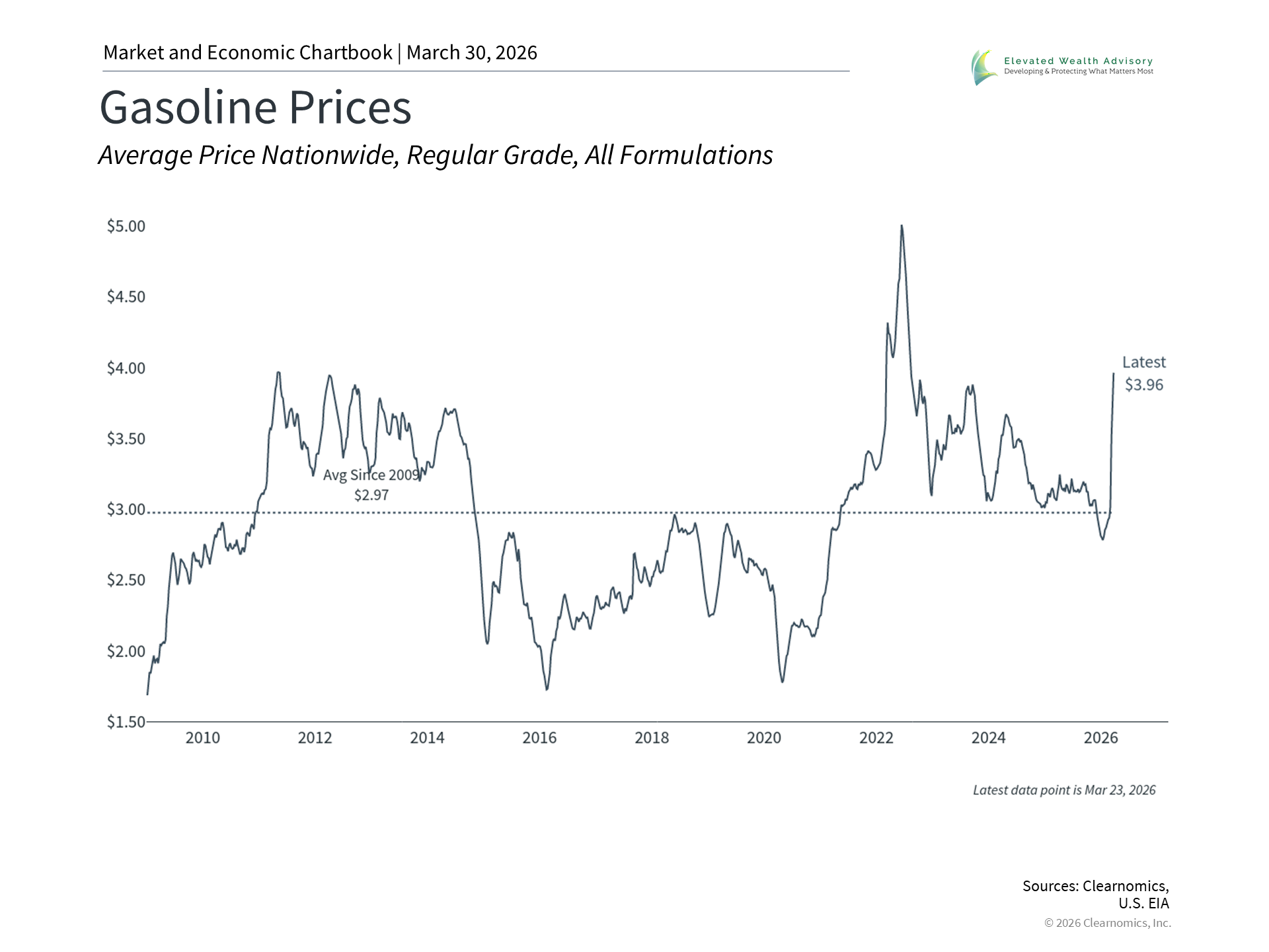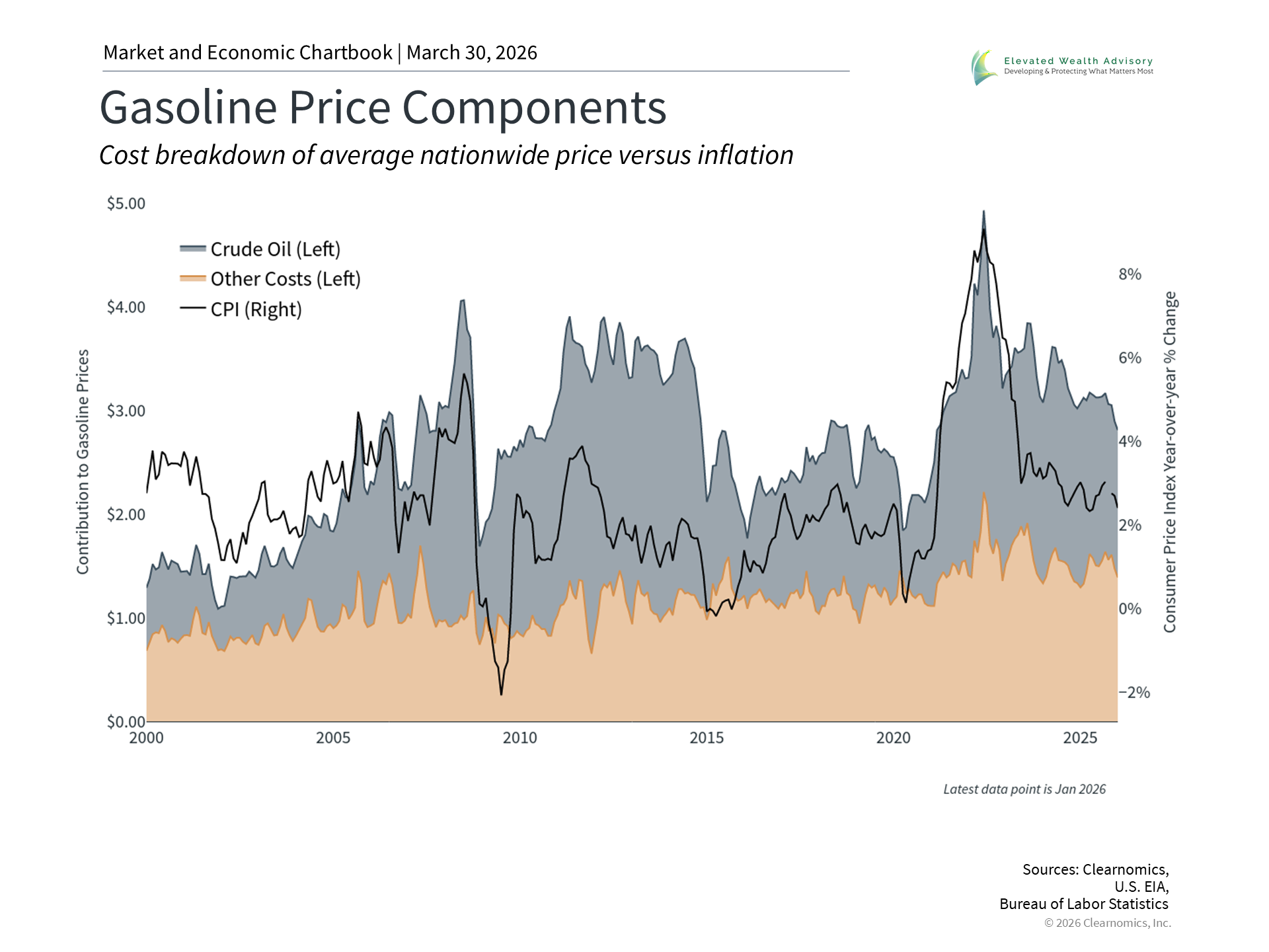 For investors, energy prices will impact headline inflation, since these costs are important components of the headline Consumer Price Index. After several years of improving energy CPI readings, the recent jump in oil and gasoline prices will almost certainly push headline inflation higher in the coming months. Organizations such as the OECD now estimate that U.S. inflation could rise faster than expected this year. This matters for several reasons. First, consumers are still recovering from the inflation surge after the pandemic. Second, both stocks and bonds have historically faced headwinds when inflation rises unexpectedly, as it raises costs for companies and reduces the real value of fixed income payments. That said, markets have demonstrated considerable resilience over the past several years even in challenging inflationary environments. Third, and perhaps most immediately relevant for financial markets, rising inflation complicates the Federal Reserve's decision-making. Markets have already shifted their expectations, with traders now assigning a greater probability to the Fed holding rates steady or even raising them rather than cutting. This reversal in expectations has introduced additional uncertainty for both equity and bond markets, especially as the Fed changes leadership in mid-May. Economists generally view these types of “supply-side” shocks as temporary. This is not a prediction that high oil prices will be short-lived, per se, but instead focuses on the fact that high oil prices should fade once supply comes back online. While the situation is still challenging for consumers, it is quite different from the 1970s. Specifically, the U.S. is the largest oil and natural gas producer, and the Fed has significantly more credibility in anchoring inflation expectations, making the current economic and financial market situation more stable than in the past. For investors, this means that the best approach continues to be staying invested with a well-constructed portfolio and financial plan. This served investors well during the last inflation spike in 2022, and is still likely the best way to achieve financial goals. The bottom line? Rising gasoline prices are a burden for consumers and will likely drive headline inflation higher. However, history shows that markets and the economy have navigated past energy shocks. Investors should maintain a long-term perspective, avoid overreacting to daily headlines, and stay focused on their financial plans. | |||