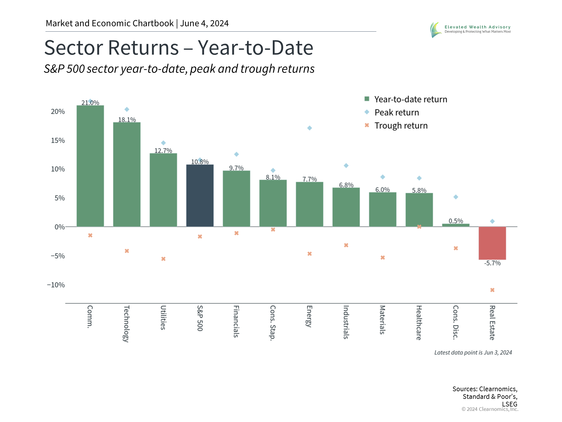 As computer scientist Roy Amara said, investors tend to overestimate the impact of technology in the short-term and underestimate the effect in the long run. There are many examples of this throughout history, most recently with the dot-com boom and bust. In the late 1990s and early 2000s, many companies rushed to add .com and .net to their names, capitalizing on the demand for all things internet related. This also occurred during the “tronics boom” of the early 1960s when a wave of companies with that suffix in their names benefited from investor exuberance for the consumer and business adoption of electronics. While these trends generated significant returns for many years, the bubbles eventually burst. In hindsight, investor capital was clearly not put to its best use despite the promises of outsized returns. The challenge is knowing if there is a bubble to begin with. Today, some are rebranding themselves as AI companies, updating their websites, and using .ai domain names - no different than in the 1990s and 1960s. The performance of large cap stocks has been driven by a handful of companies related to technology and AI, including the Magnificent 7. Companies like Nvidia, for instance, have become household names when only a couple years ago they were primarily known for video game graphics cards. There are clear differences between today's market and the dot-com bubble, the most important being that many large cap companies benefiting from these trends are highly profitable. There is also nothing wrong with taking advantage of a market trend or long-term investment theme. However, history shows that the problem occurs when trying to either time the market or making concentrated bets that are inappropriate for one's portfolio. The accompanying chart shows that while technology-related sectors such as Communication Services and Information Technology have outperformed, other sectors have done well this year too. Having too narrow a focus on AI trends, at the expense of overall portfolio diversification, can be problematic for investors as they work toward their long-term goals. Productivity is what drives long run economic growth