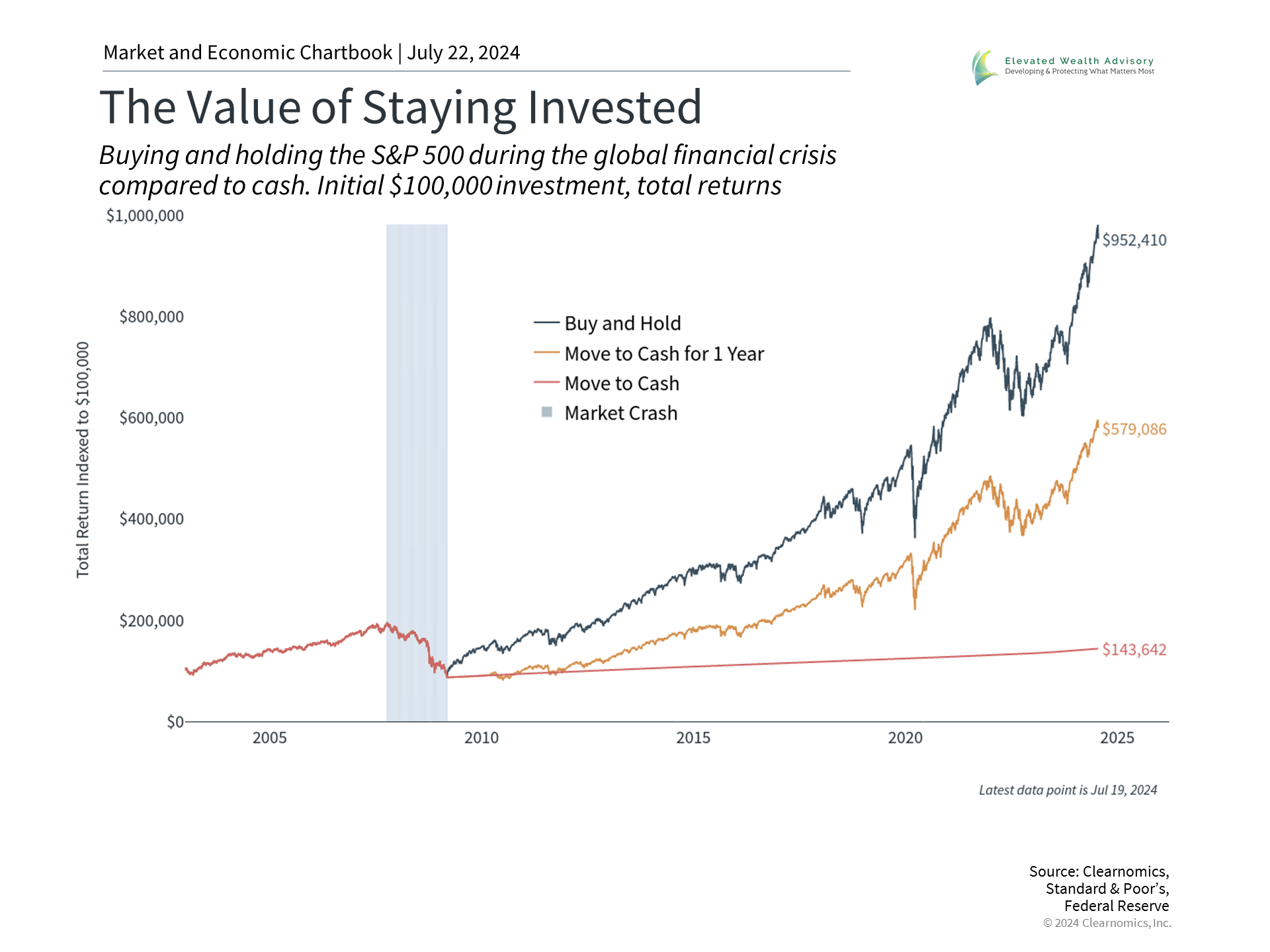 From President Biden’s announcement that he will not be seeking re-election, to a rotation out of tech stocks and into small caps, recent events have added to market uncertainty. The S&P 500 recently declined 2.9% from its all-time high, while the Nasdaq pulled back nearly 5%. It’s natural for investors to be concerned about where the market is headed, especially as the presidential election season heats up and the Fed prepares for its first rate cut this cycle. However, history shows that it’s important for investors to stay focused on the long run and not overreact to every news headline. More than ever, staying levelheaded is the best way to achieve long-term financial goals. Investors are increasingly responsible for their own retirements