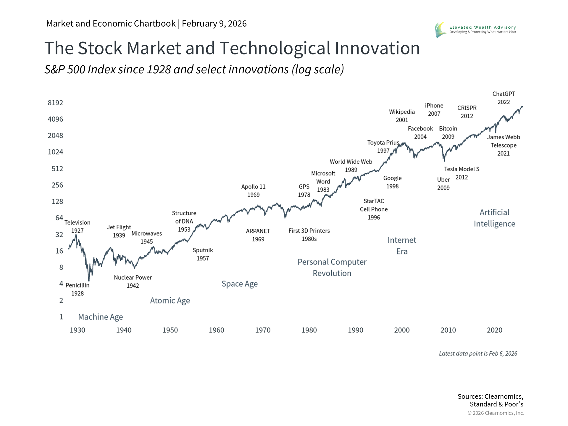Fifteen years ago, venture capitalist Marc Andreessen famously wrote that "software is eating the world." What he meant was that any service that could be written and automated as software, would be. This has proved accurate as cloud computing, software-as-a-service, and digital platforms have reshaped both entire industries and how consumers buy goods and services. As investors, this has important implications and is a major source of recent market volatility. Today, AI represents the next phase of this transformation, and as with every major technological shift, markets are trying to assess what it means for specific sectors and the overall economy. For long-term investors, maintaining perspective on how these cycles have unfolded in the past can provide helpful clarity. Innovation and disruption are two sides of the same coin, and the recent broad sell-off and quick bounce back in technology stocks shows how difficult it can be to predict how these trends play out. The release of new automation tools from Anthropic, a major AI company, demonstrated the ability to perform tasks previously handled by specialized software in areas like legal and financial research. This sparked a reassessment of traditional software business models. The stocks of some large technology companies also struggled after reporting over a hundred billion dollars in quarterly capital expenditures on AI infrastructure, raising questions about whether this spending will pay off. Ironically, this occurred almost exactly one year after the "DeepSeek moment" in January 2025, when a Chinese AI company purportedly showed that AI models could be built at a fraction of the cost. In both cases, markets re-evaluated the winners and losers of technological change but also rebounded quickly once the dust settled. For investors, this is a reminder that maintaining a long-term perspective is important as the market shifts between the opportunities from innovation and the challenges of disruption. Technological disruption follows familiar patterns