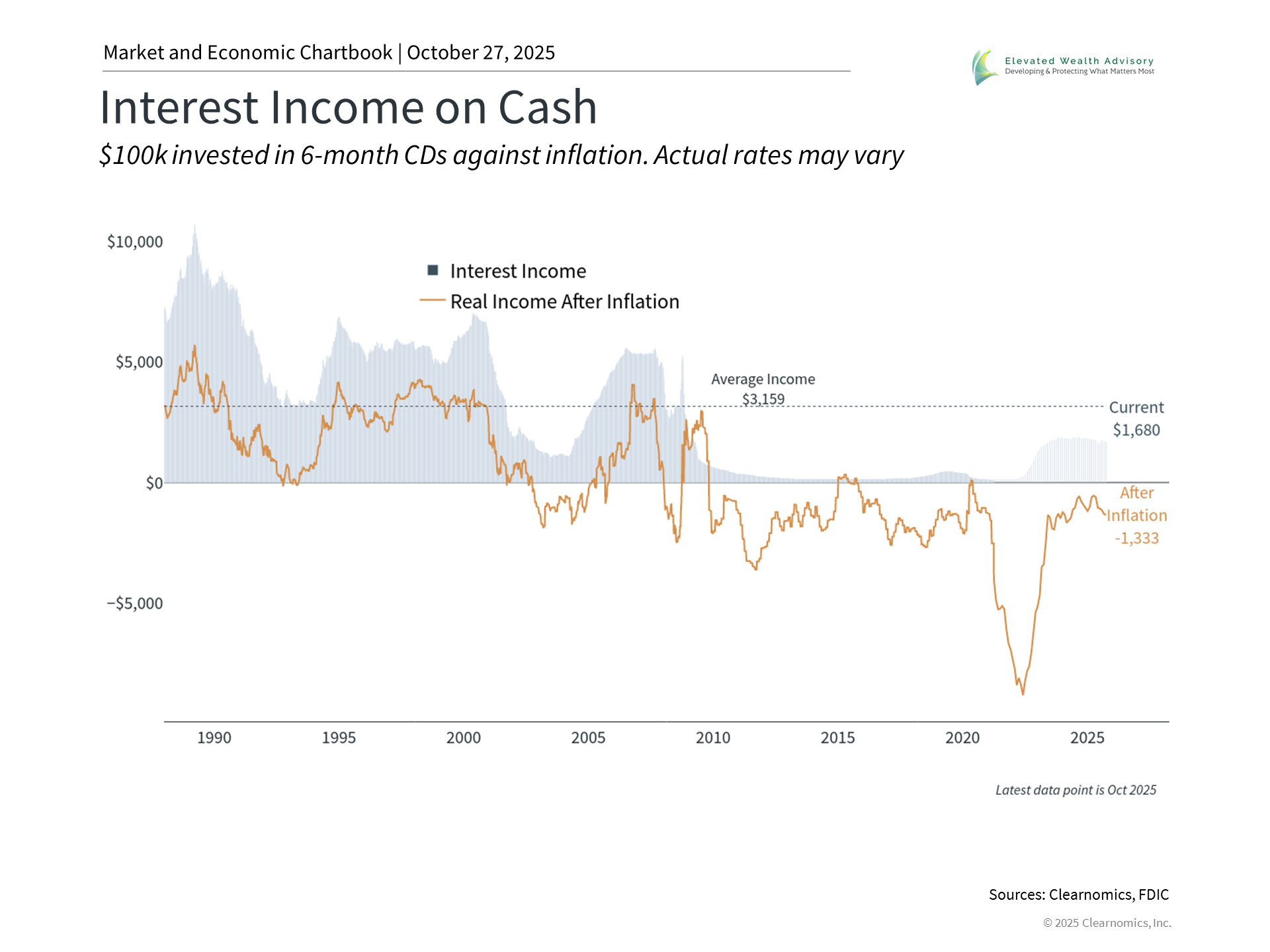 Just as gains can compound over time, so do losses if the purchasing power of a portfolio does not keep up with inflation. This is even more important today since retirees must also plan for the possibility of living longer than previous generations. This means that life expectancy is an important input to any financial plan. According to the latest Social Security Administration data, 40-year-old men and women have an average life expectancy of 79 and 83, respectively. However, for those who make it to 65 years of age, their life expectancies increase to 83 and 86. These are just averages - those in the 90th percentile could live to 94 and 97, respectively. While the opportunity to enjoy a longer, healthier retirement is a wonderful development over the past century, the difference between a 20-year retirement and a 30-year or longer retirement has dramatic implications for portfolio construction and withdrawal strategies. This is sometimes known as “longevity risk,” a challenge that is asymmetric since running out of money during retirement is far more problematic than leaving assets to loved ones or charitable causes. So, while many prioritize income-generating investments like bonds when it comes to retirement planning, it’s also important to maintain growth-oriented assets like stocks. It also creates financial challenges that make thoughtful planning even more valuable. Understanding how to structure portfolios for multi-decade retirement periods, while managing withdrawal rates and adapting to changing market conditions requires expertise that goes well beyond simple rules of thumb. Lower short-term interest rates also reduce income from cash