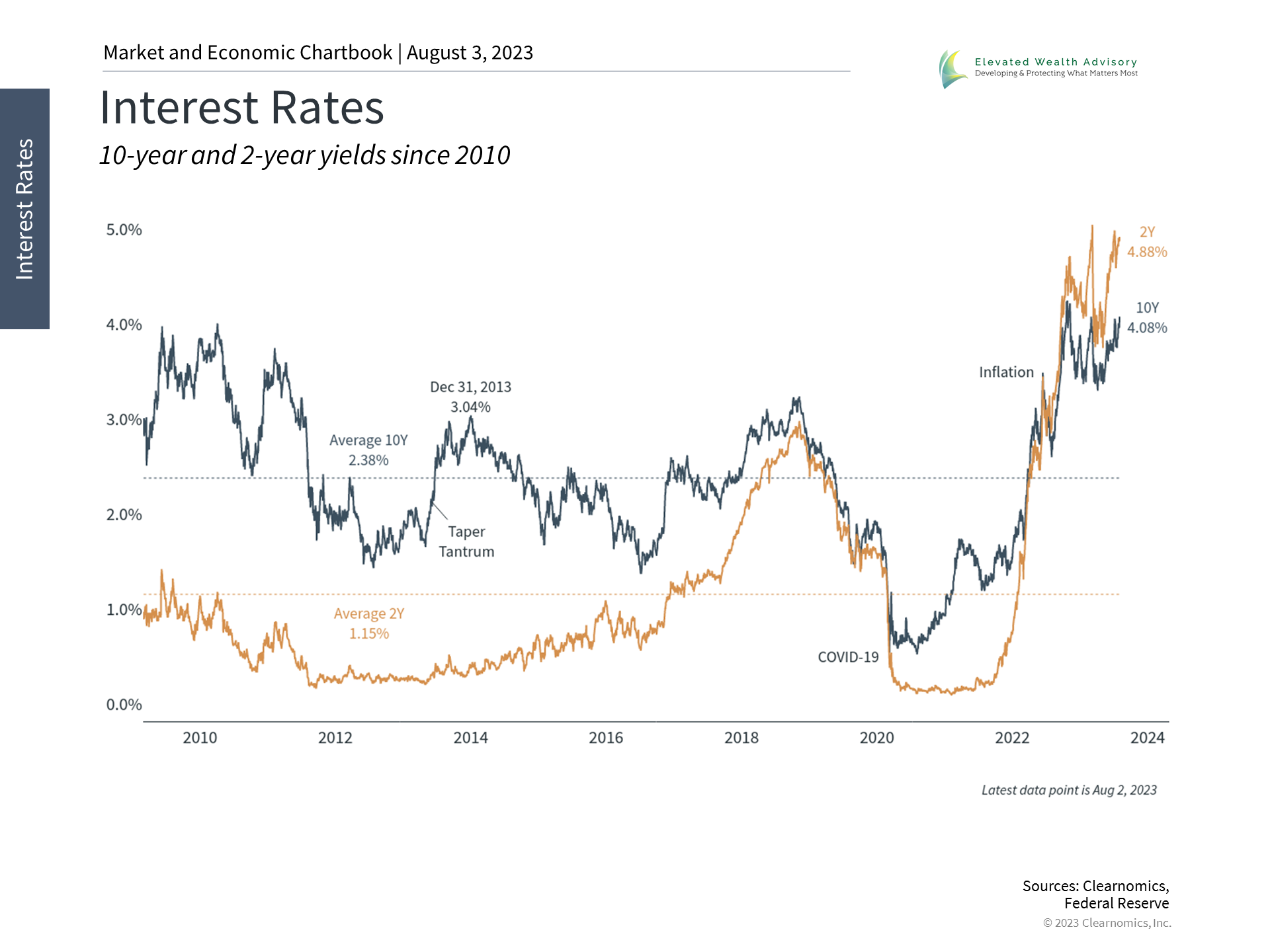Why does this matter? Despite periods of brinkmanship, the U.S. has never defaulted on its debt. The creditworthiness of U.S. Treasuries is critically important not only to everyone that holds these securities - from the largest pension funds to everyday households - but the global financial system is built on the premise that Treasuries are unquestionably risk-free. While the situation is still evolving, the immediate impact of the downgrade has been higher interest rates. There are some parallels to the summer of 2011, almost exactly 12 years ago to the day, when Standard & Poor's was the first credit ratings agency to downgrade the U.S. debt. At that time, only a couple of years after the 2008 financial crisis, the global economy was facing many challenges including the debt crisis in Europe that led to the Grexit situation. This was a drag on markets even before the U.S. debt downgrade. During that period, the stock market fell into correction territory with the S&P 500 declining 19%. Ironically, the prices on Treasury securities increased during the 2011 debt ceiling crisis because, even though these were the exact securities being downgraded, investors still believed they were the safest in the world at a time of heightened uncertainty. The debt ceiling was eventually raised and a new budget was approved, allowing markets to bounce back and reach new all-time highs only six months later. At the time, the market reaction was not only difficult to predict, but was unintuitive to many. For most investors, focusing on the long run while holding an appropriate portfolio, ideally with the guidance of a trusted advisor, was the best way to navigate that year. Markets have been calm this year amid the strong rally